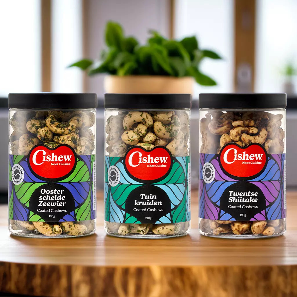 Culinaire cashews met elk een unieke smaaksensatie. Feestelijk ingrediënt en tussendoortje in één.