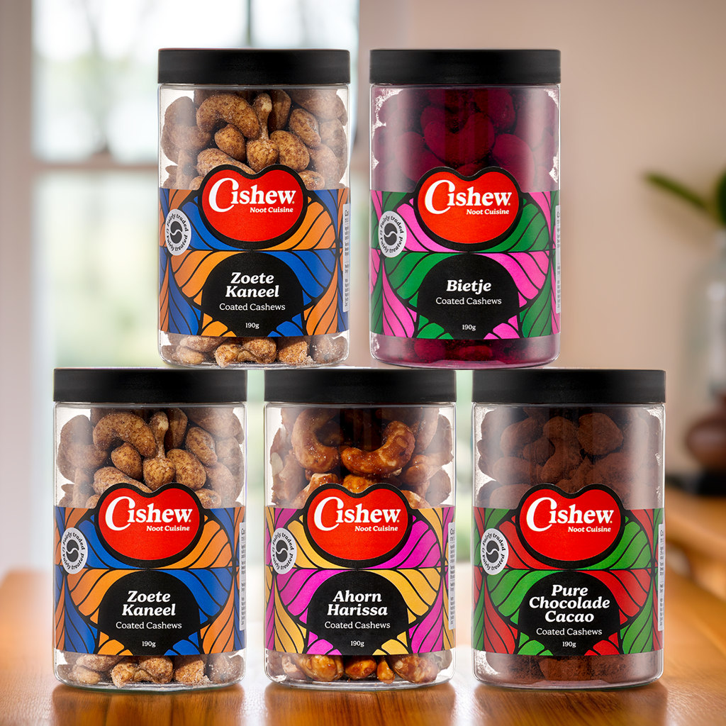 Snoepje en gezonde snack tegelijk. Licht zoete cashewnoten met een extra feestelijk jasje, met extra smaken!
