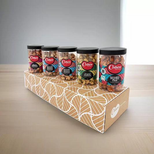 Hartig, zoet, spicy, kruidig of zacht van smaak, in handige potjes van zo’n 200 gram. Kies jouw box met 3 of 5 verrassende cashewcreaties! Voor elke gelegenheid een speciale box met smaken om te zoenen!
