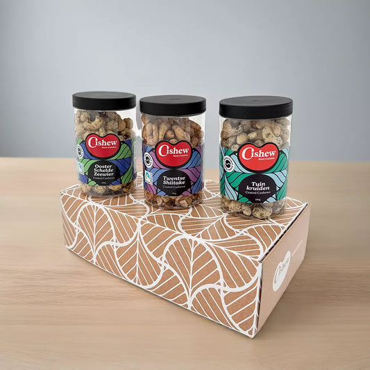 Unieke cashews in culinaire combinaties die je verrassen. Kies je favoriete mix van 3 smaken!